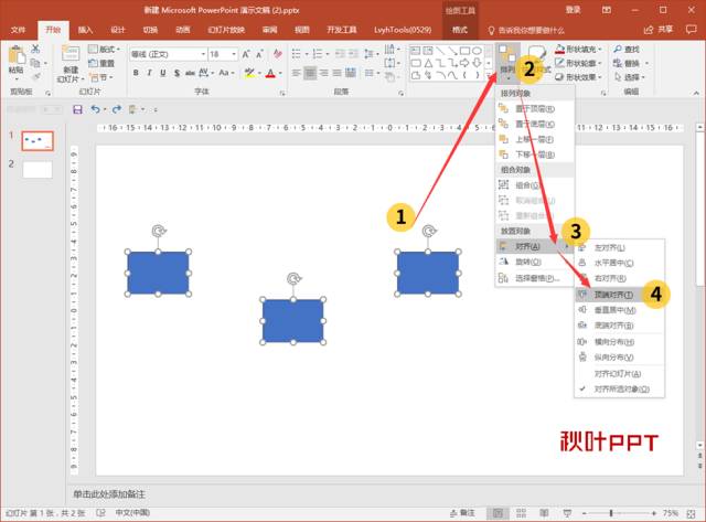 这个原则同样也适用于 PPT,但是我们如果我们要对齐一组元素,往往要通过这样的四步: