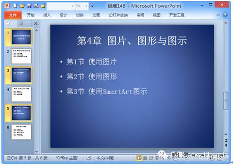步骤3 将选择的背景应用到选中的幻灯片中,如图9-31所示为第1、3、5张幻灯片设置了背景。