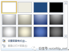 注意:根据演示文稿应用的主题不同,背景样式列表中显示的背景的配色也会不同。