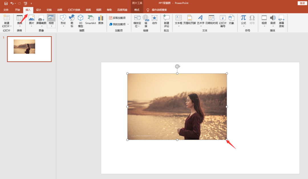 メ图片右下角拉伸,图片比例同比变化,但是图片横纵比不能完全覆盖整个PPT。メ