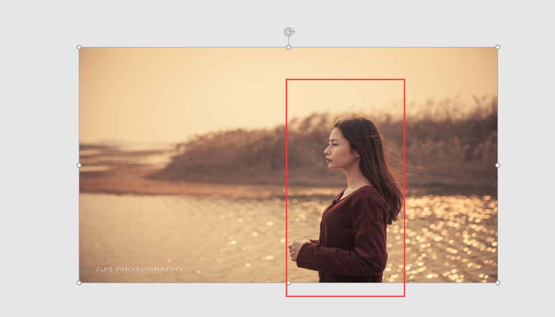 メ点击其中一张图片——格式——裁剪,裁剪边框拖动,将包含人物的半边图形裁减掉。メ