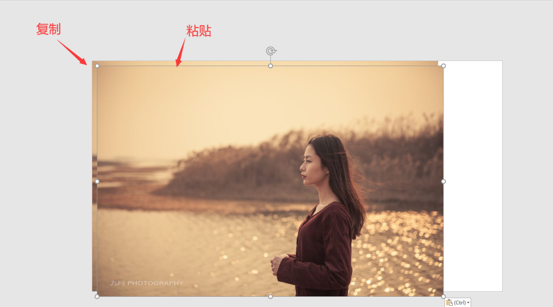 メ我们先选择该图片,复制粘贴,将两张图片重合在一起。メ