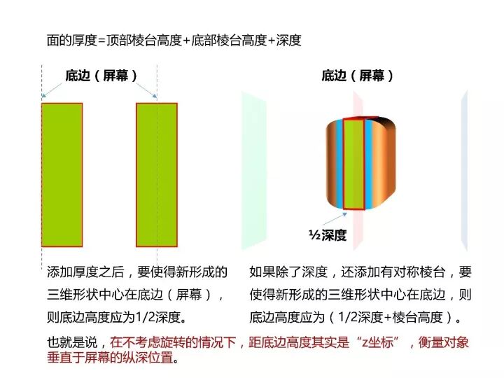 所以,通俗地讲,距底边高度是指图形最高点到屏幕的距离。我们可以通过修改这个距离,让屏幕贯穿图形的中心(图14),这样可能会更符合我们的思维方式,但是熟练之后就没必要这么做了。