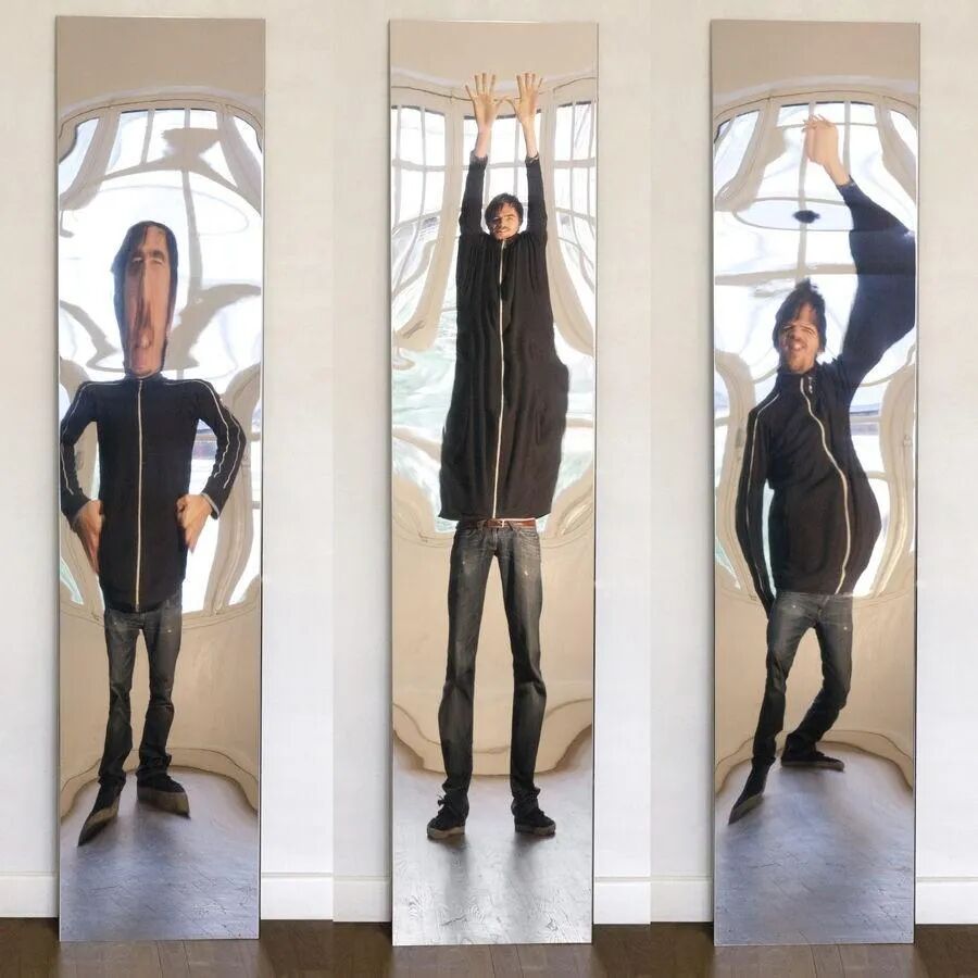 绘制水滴 文中对水滴的描述是: “头部浑圆,尾部很尖。” 在插入形状下拉栏的基本形状中, 有一个叫【泪滴形】的形状, 按住shift绘制, 然后拖动黄色控点, 就能够做出头部浑圆,尾部很尖的形态了。 接着文中说它: “表面是及其光滑的全反射镜面。” 曲面的镜面, 想象它的反射有点困难。 所以我拿出了家里的汤勺和地球仪, 顶着关爱智障的眼光做了个实验, 大概是这种形状。 使用OneKey插件【图片极坐标】, 可以让图片产生扭曲。 与形状相交制作出反射效果。 在【三维格式】设置棱台, 材料选择【金属】效果, 光泽选择【平面】, 能够赋予形状金属反射效果。 这里水滴的设计, 是由图片和形状相交得到的, 相交的结果通过裁剪修改显示范围后, 即可被平滑切换所移动, 以模拟反射画面的动态变化。 用PPT画科幻是比较科幻的操作, 那拓展到实际的演示应用中, 我们可以这样做: 把背景做成连贯的长图, 每一页裁剪到只显示一部分, 手机里面也显示一张长图裁剪的一部分。 就有这样的效果。 把一张较大的图片, 盖在一张较小的图片上方。 通过裁剪平滑, 即可实现放大镜效果。 把一张演讲播放的大图, 放到目录页, 再裁剪到多项并列的版式, 应用平滑切换。 就有了图片目录转换效果。