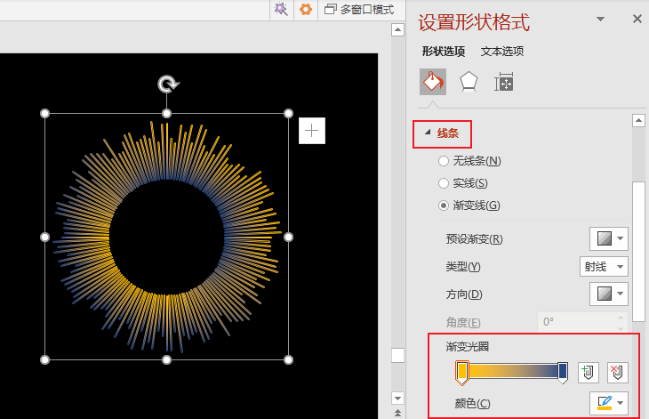 然后给页面添加一个黑色的渐变蒙版覆盖在这个形状上面,即可达到这个效果: