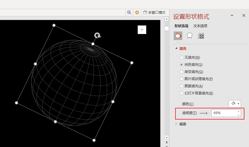 如果我们把这个素材,放到PPT中,然后旋转一点角度。再调整形状的透明度,可得到这个效果: