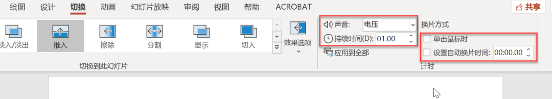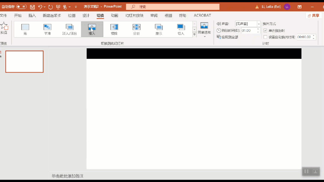 设置完切换效果后,我们再来看看幻灯片的【计时】功能