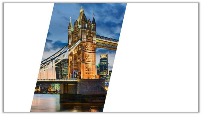 我们会在一些高逼格的 PPT 内页中看到以下设计,一般的做法是用图片填充形状,即插入形状之后,将形状填充改为图片填充,效果如下: