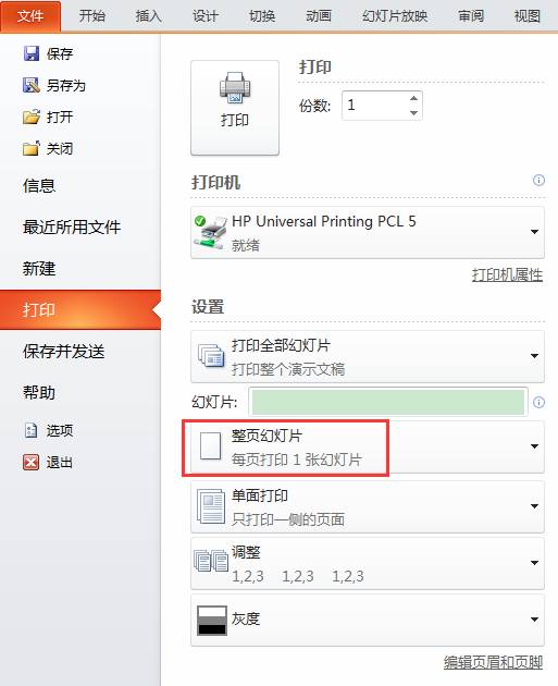 对于非常规的页面设置,在需要打印输出高稿纸时,可以勾选【根据纸张调整大小】选项,使幻灯片页面以最大化还原,并适应所选的打印纸张的长宽比例。