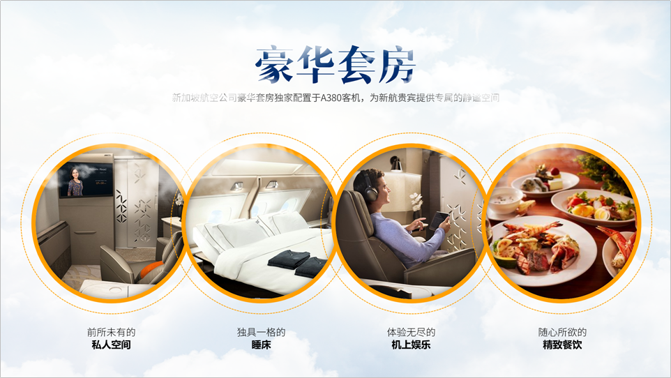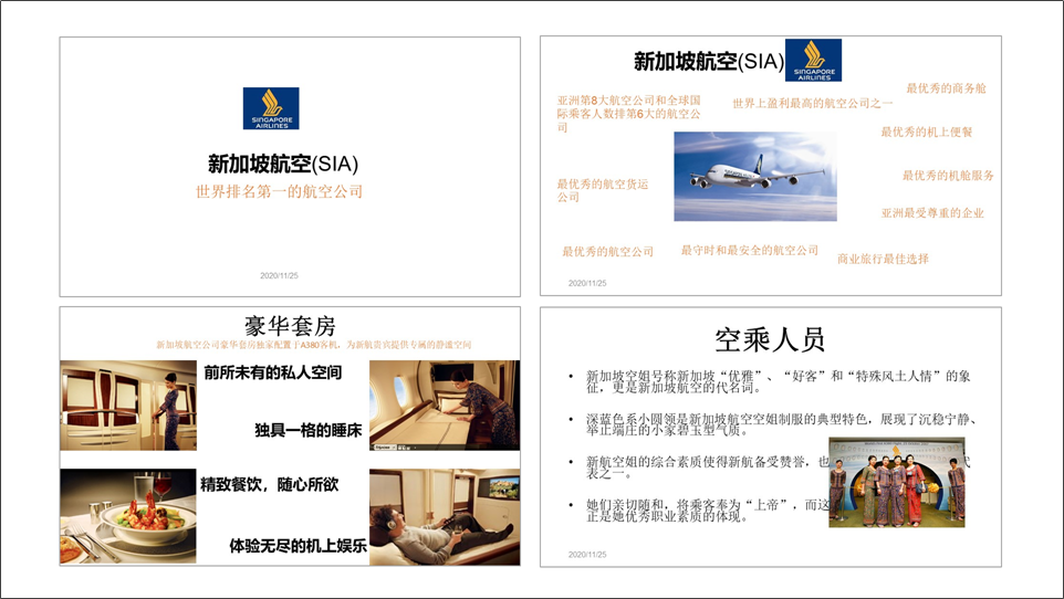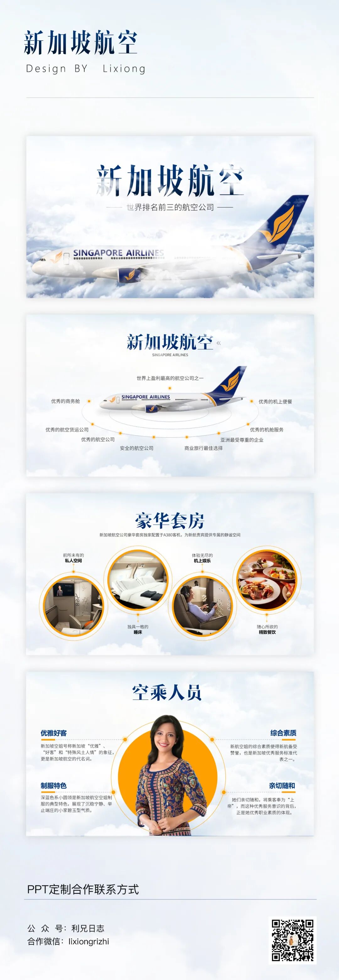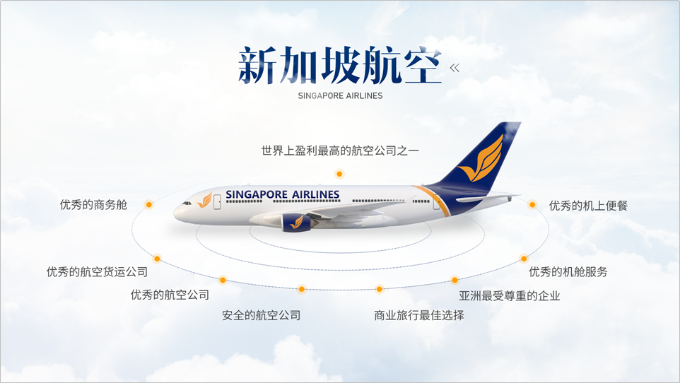 风格上,由于是新加坡商务航空的介绍PPT,所以还是以清爽的商务风为主。