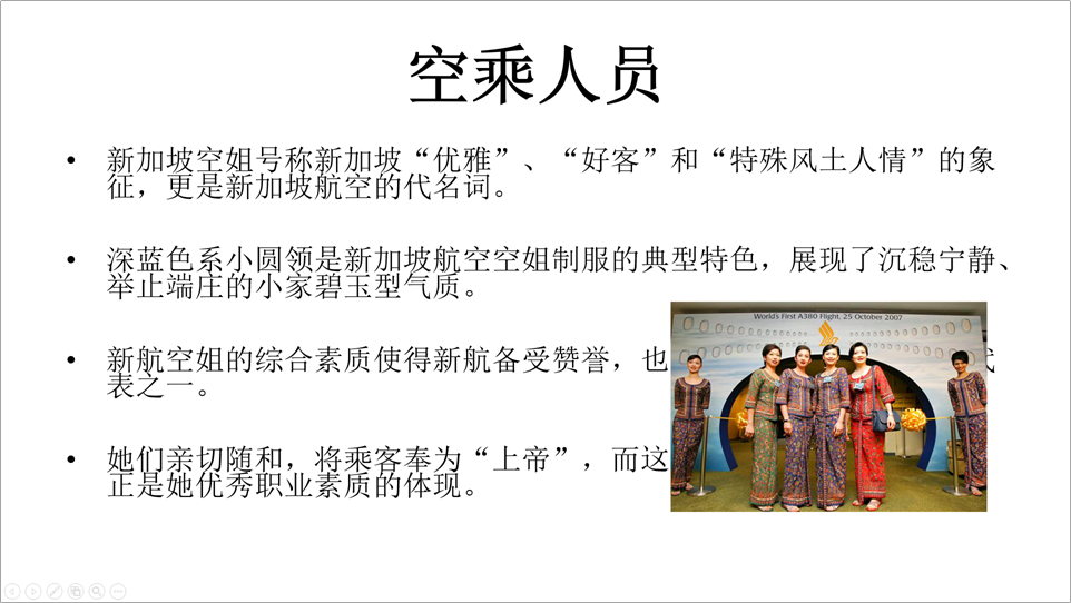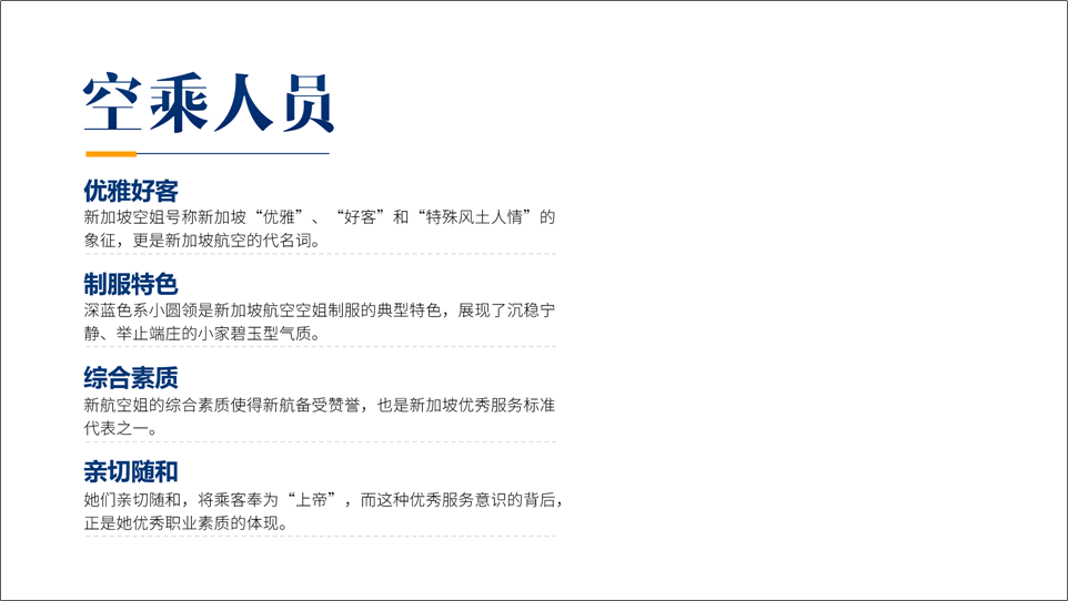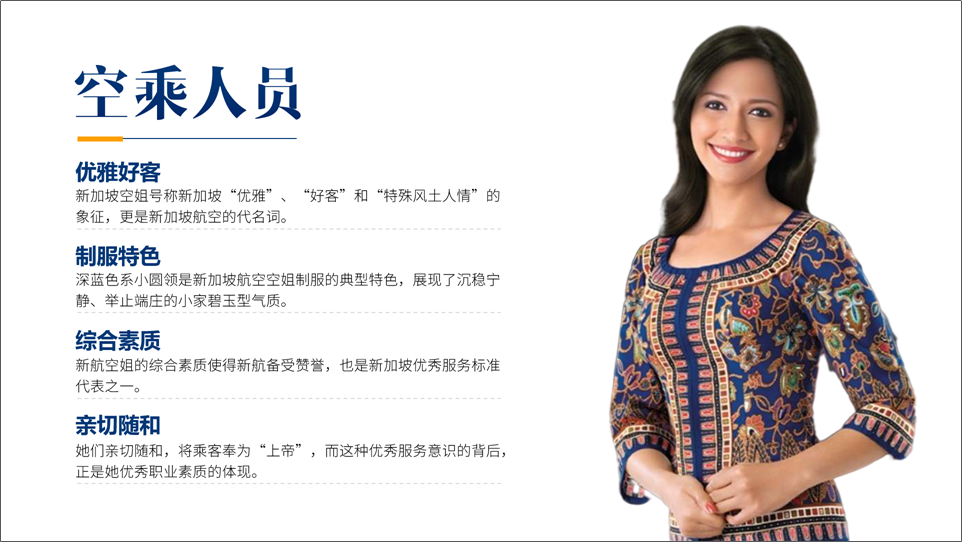 这一页说的是新加坡航空的空姐,主要有四段话,我们可以提炼一下。