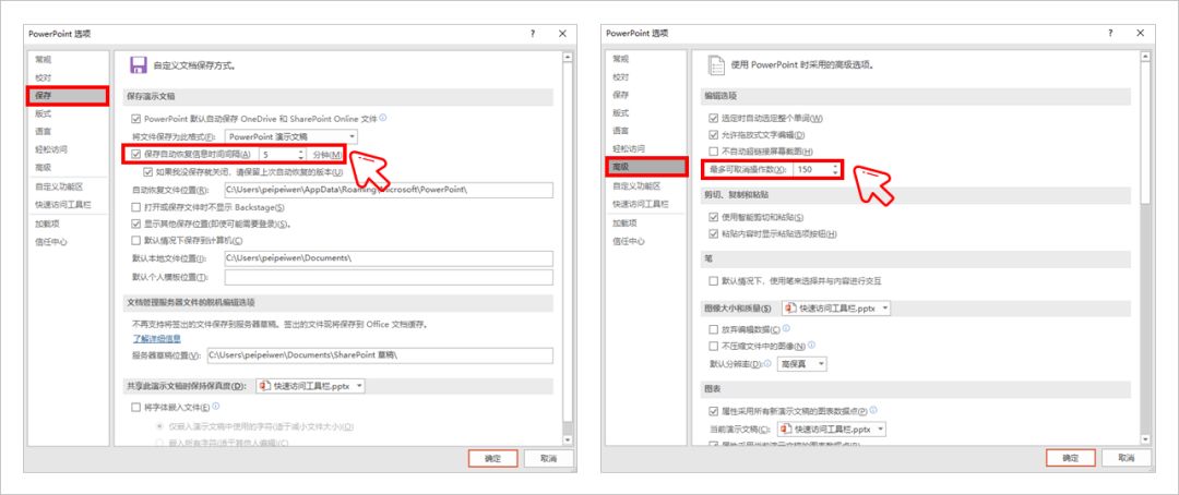 这一块的设置相信小伙伴们不陌生,就是增加咱们PPT的撤销次数和修改保存时间,给咱们PPT添加后悔药的数量哈哈哈