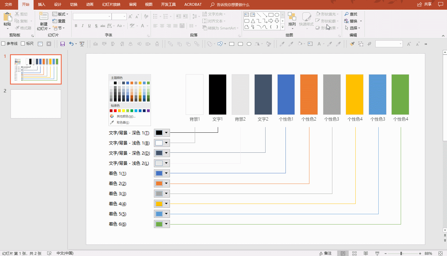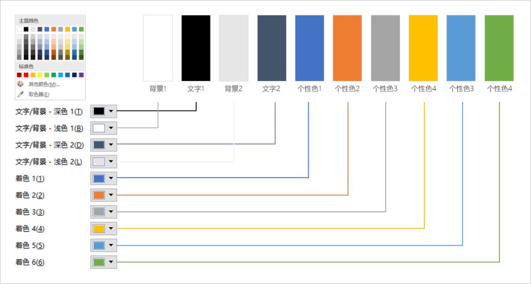 说完了自定义字体,就不得不提到自定义颜色了,不知道小伙伴是否留意过PPT的主题色,就是下面这个东西: