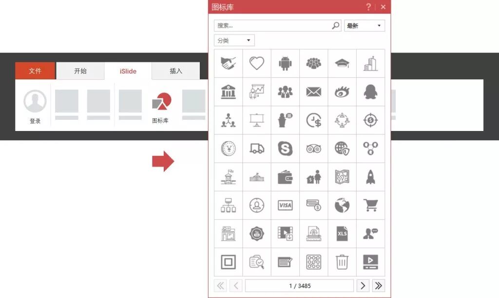 直接去islide.cc这个网址,下载安装一个PPT插件【iSlide】即可,里面有个【图标库】,图标的数量可能比你的腿毛还要多。