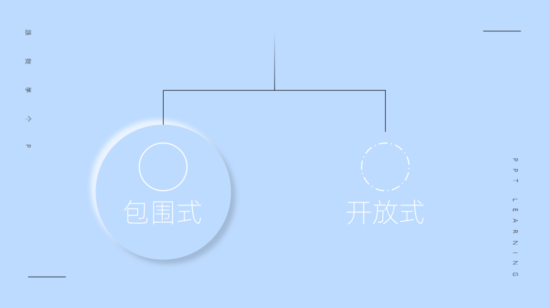 接着再插入一根PPT自带的【左右中括号】线条,并为线条设置【渐变线】效果,进而做出这种被掰弯了的框架线条: