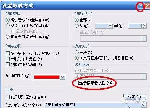 打开PowerPoint,单击“幻灯片放映”——“设置放映方式”,在多显示器处选择第二显示器,勾选“显示演讲者视图”。