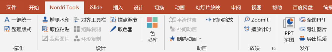 同样是一款免费PPT插件,提供一键统一字体、整理版式、色彩库等功能。