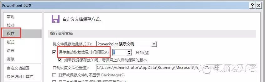 这时,救命设置一就派上用场了。把PPT文件设置成每3分钟(每个人根据自己的需要调整时间)保存一次,这样我们就再也不要抓狂了。