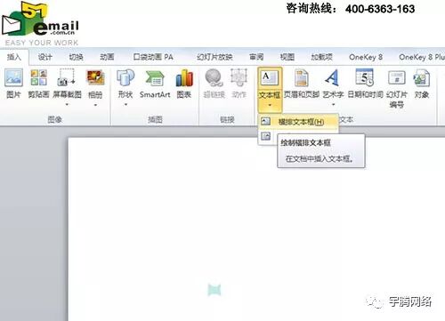 1、首先启动PPT2010,执行插入-文本框命令,选择横向文本框。