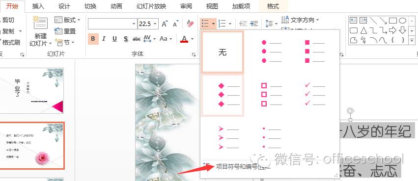 我们知道了可以在ppt中的文本添加一些既定的项目符号,如希望更加生动形象的说明文字内容,我们可以用于文本内容相呼应的图片作为项目符号,下面我们来操作一下。