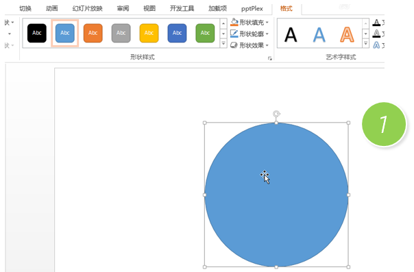 具体操作如下:打开PPT2013,然后按住Shift键盘绘制一个圆形。如下图所示。(下图 1 处)