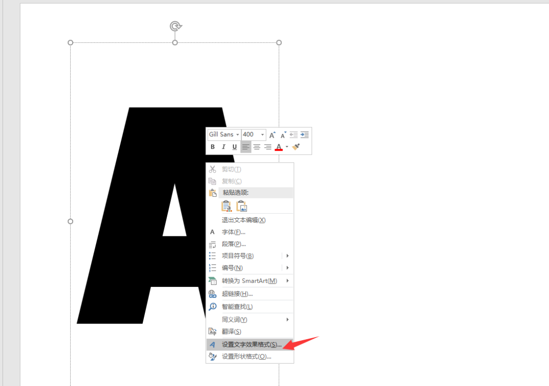 メ点击文字文本框——右键——设置文字效果格式。メ