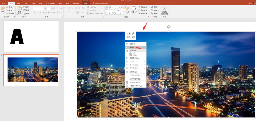 メ我们插入图片的背景图片,点选图片,右键复制。メ