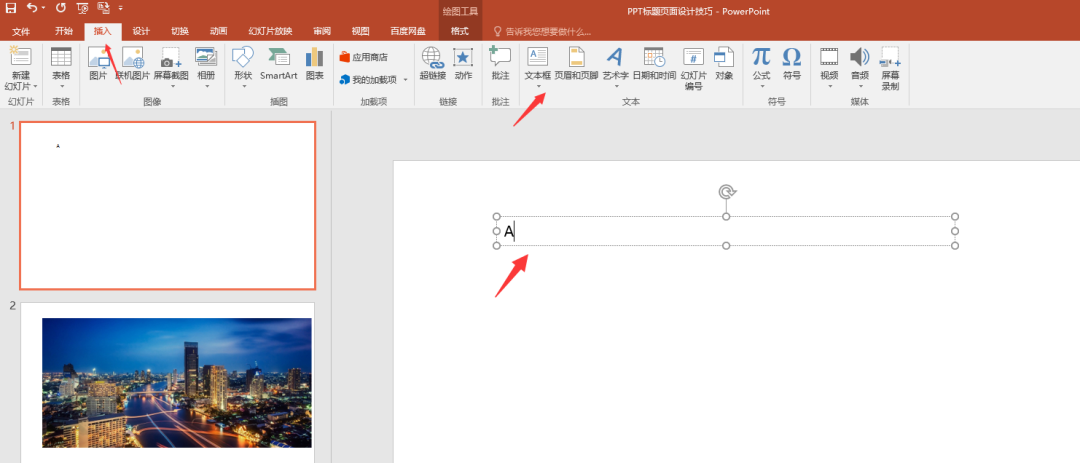 メ大家请看范例图片,我们在空白PPT中插入文本框——输入数字A。メ