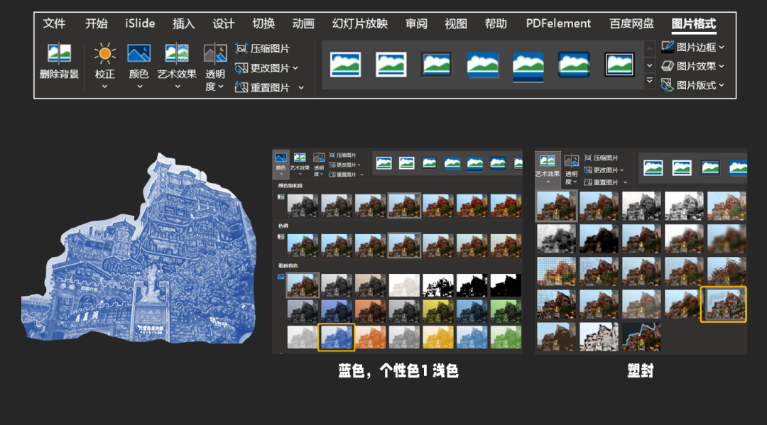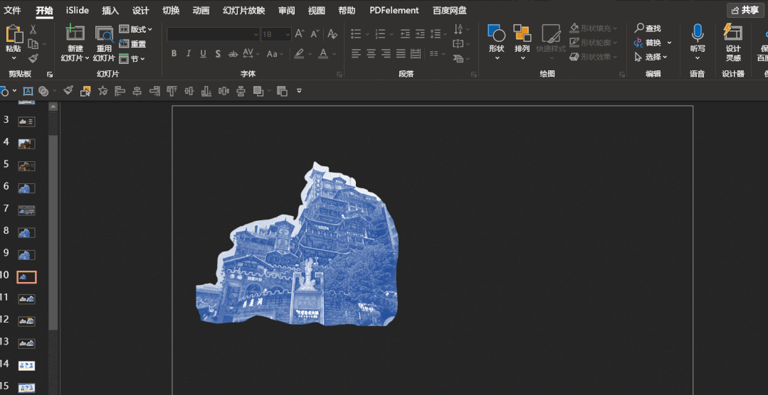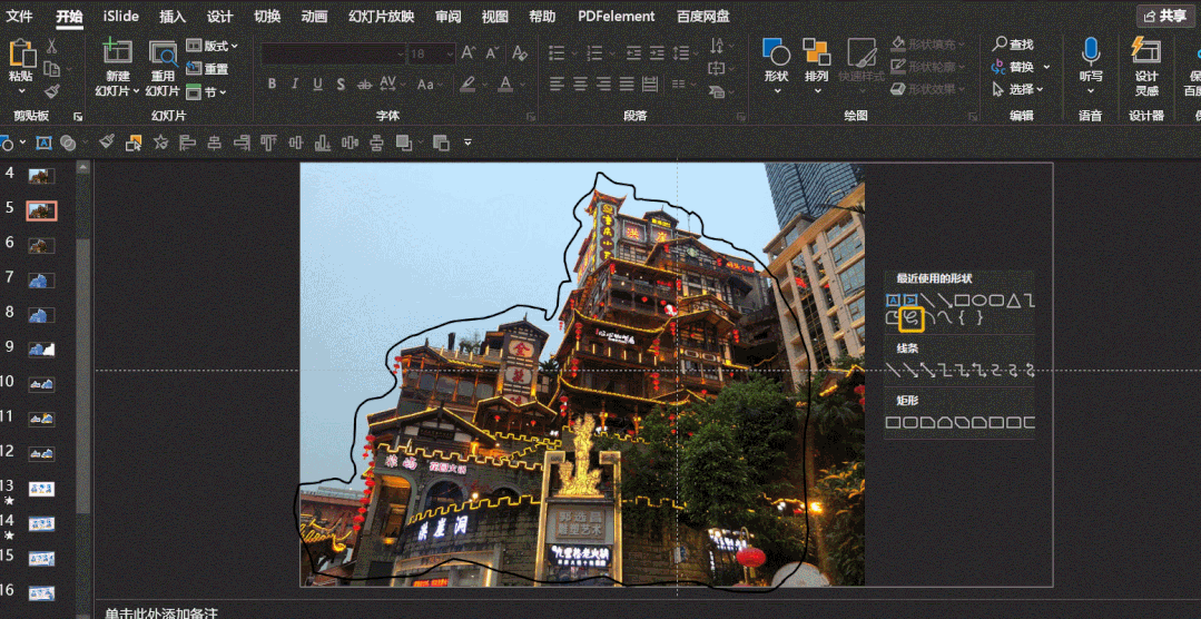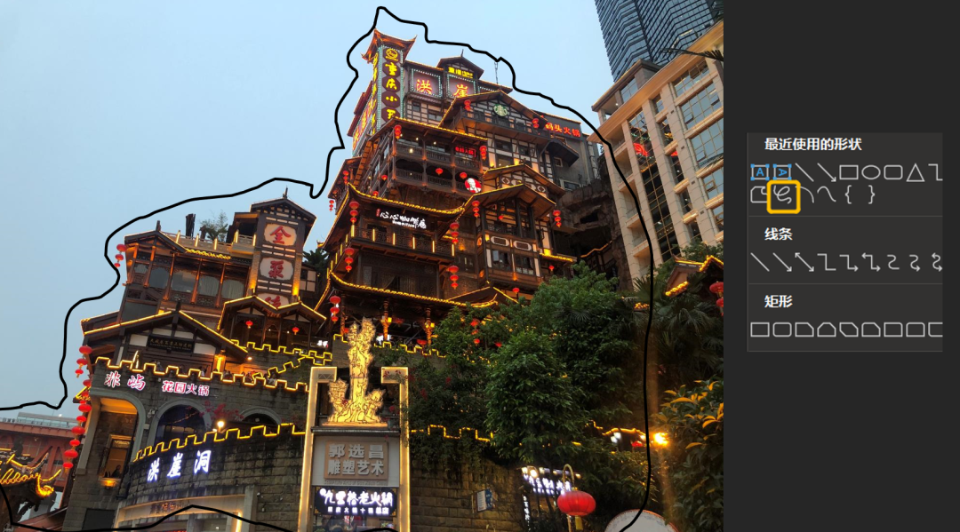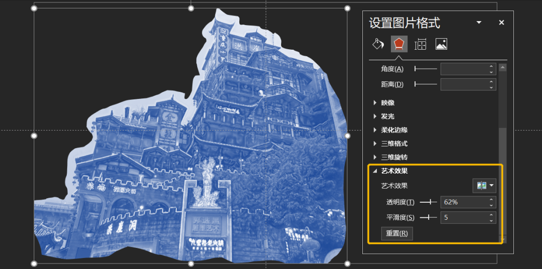 先选中图片,再选中轮廓图形,然后选择形状格式,最后选择合并形状,相交。