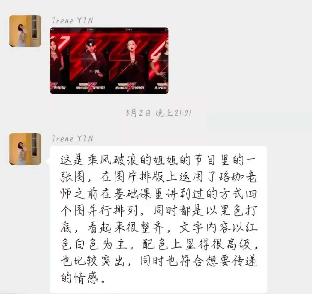 不仅如此,在这边文章发出的一个小时前,这位小姐姐还给我提供了她课程学完后第一份工作汇报作品,希望文章展示最新的成果。