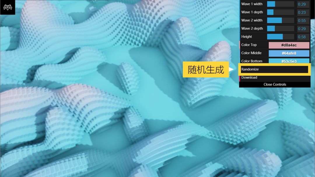 你能想象封面这个背景你也可以一键生成么?用的是国外 WebGL 大神 Marpi 的一个工具:Biomes,可以随机生成抽象的体素地形: