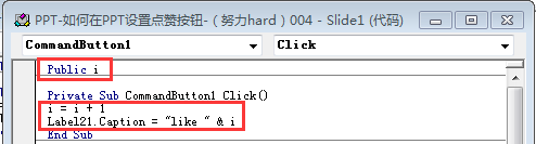让代码改为Label21.Caption = "like 0”
