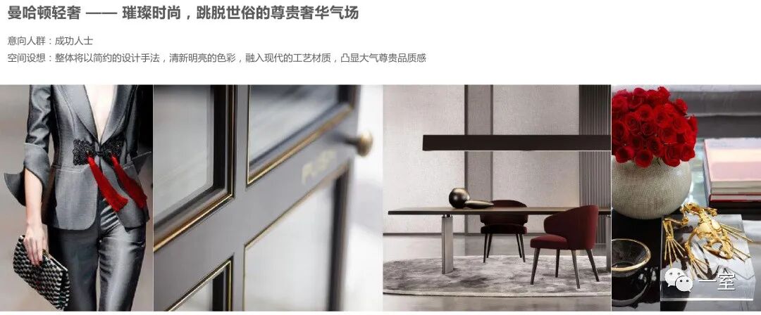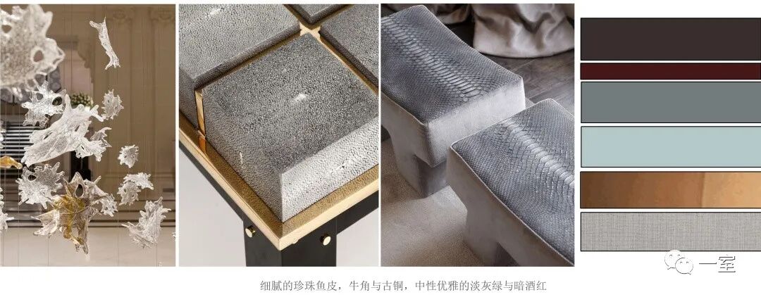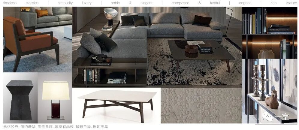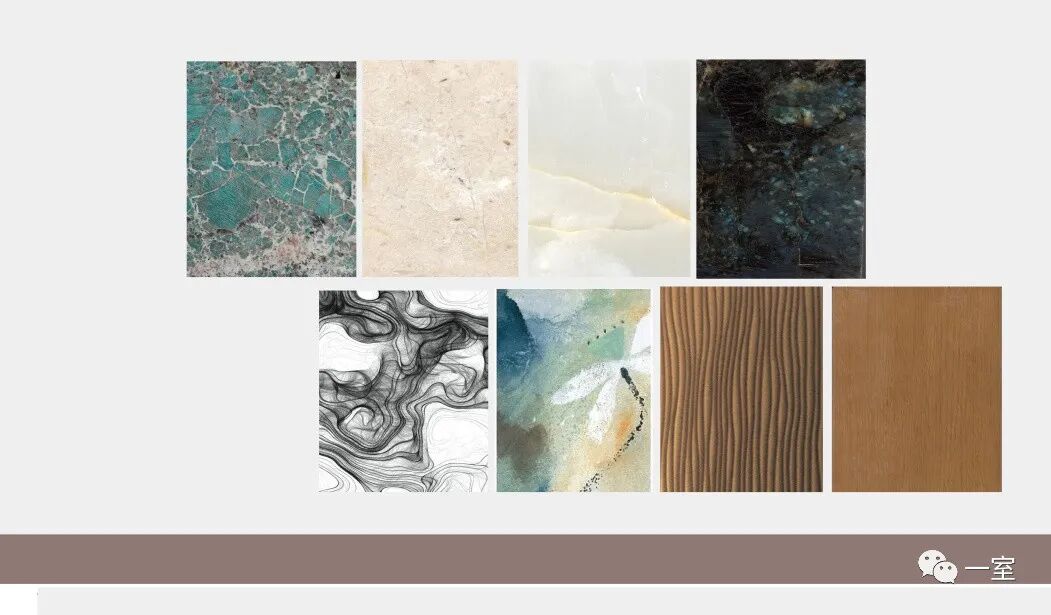 材质有质感、色彩等多方面的体现,在PPT中加上材质搭配意向图,能更好的了解客户对不同材质的需求和喜好,以便后期方案的推进。