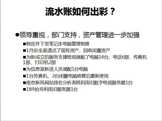 比如下面的案例,内容都是日常部门里面的零零碎碎,如果一笔流水账自然没有人认为你的工作做得好。