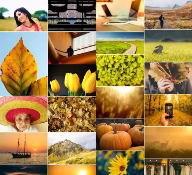 如果你要找特定颜色的图片,那么在如上Visual Hunt首页搜索框底下,点击相应的色条就可以了!
