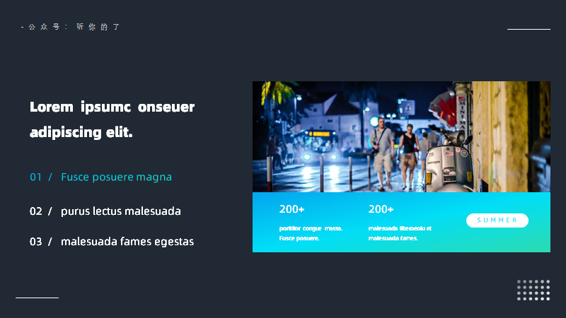 就像之前介绍的图片渐变这张,排版非常简单,重点就是在于对配图的处理上: