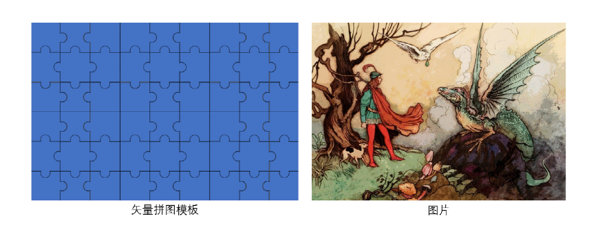 1.在PPT页面中,提前准备好一张矢量拼图模板和一张图片。