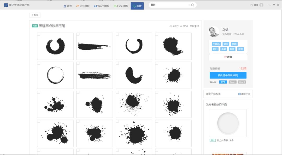 在 PPT 美化大师插件的「资源广场」中,可以免费获取墨迹素材。