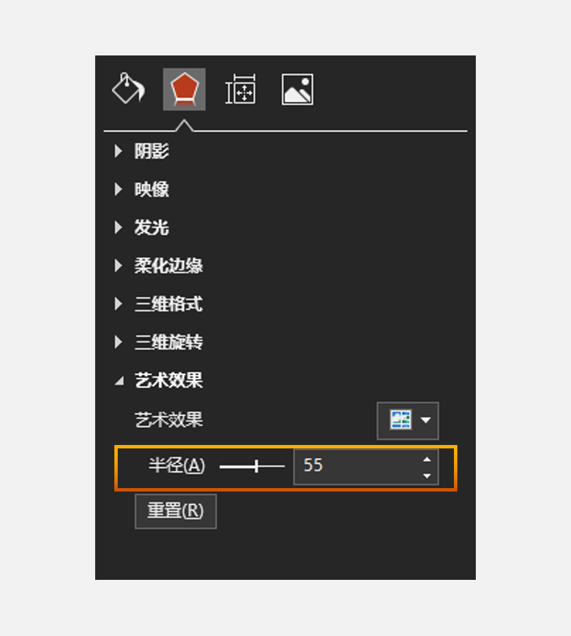 接着设置一个55大小的【半径】即可将背景图片变模糊化,半径越大代表图片模糊度越高。
