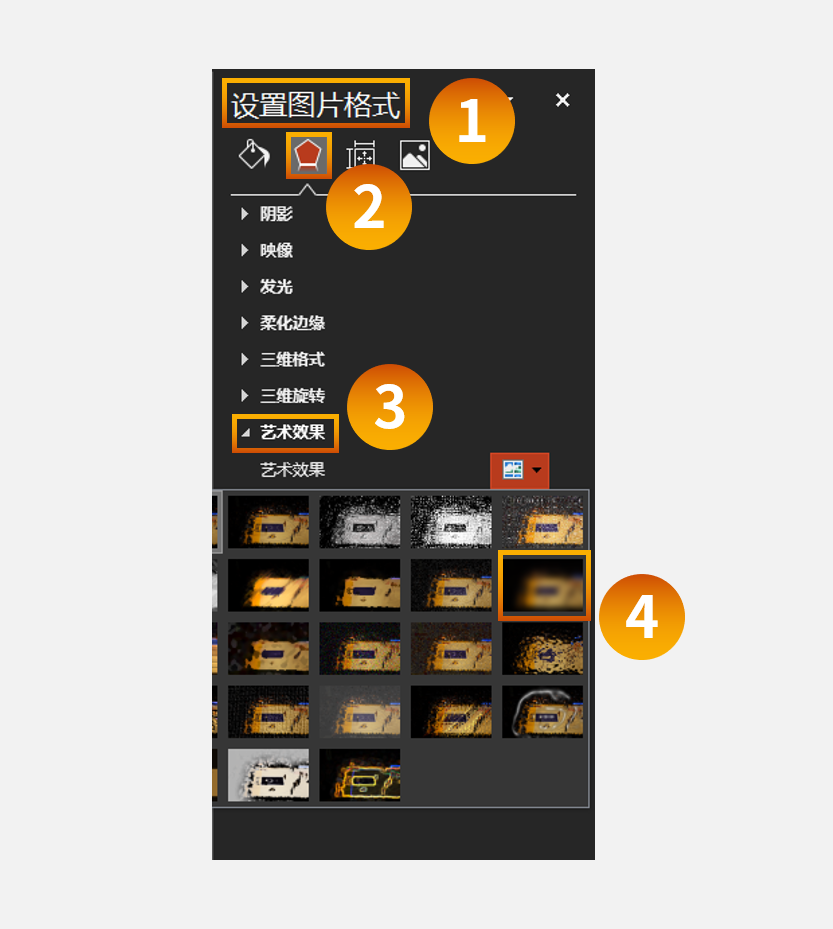此时你只需要点击【设置图片格式】-【效果】-【艺术效果】-【虚化】,