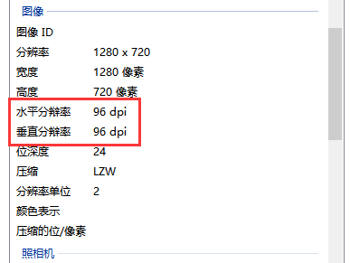 但是我们查看一下导出的图片的属性,会发现图片的分辨率只有 96dpi,而期刊论文一般都要求图片的分辨率为 300dpi。