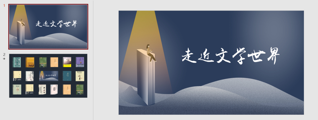 (3)新建一页空白的幻灯片。复制刚才中间那张比较大张的图片,粘贴到这个空白页面,并将其放大到覆盖到整个页面。
