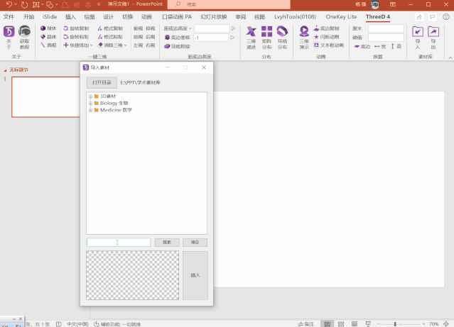 结合ThreeD、iSlide、Lvyhtools、OneKey插件等高效插件,PPT的作图效率还会得到大幅提升。比如ThreeD插件: