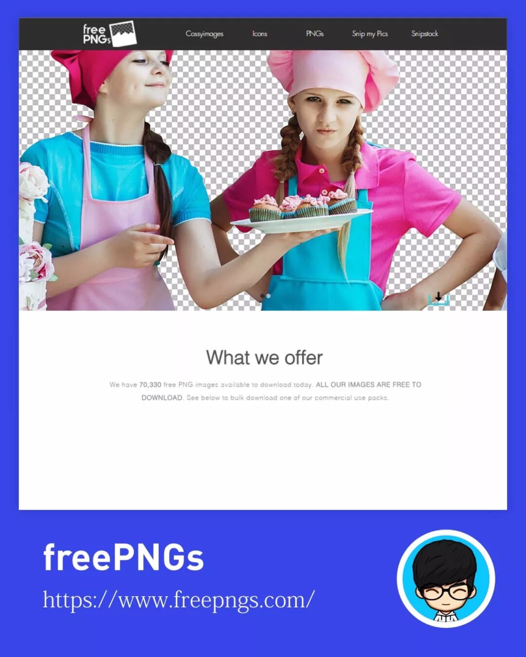 推荐理由:FREEPNGS 有 70000+ 的 PNG 图片收藏,图片的类别也非常丰富,而且通过类别找到的图片可以很容易地找到其他同类型风格图片。