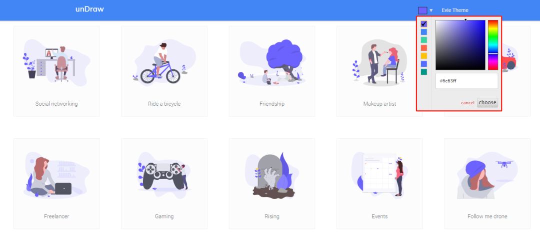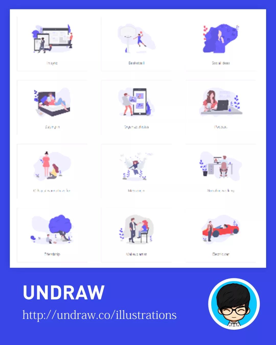 UNDRAW 用于扁平化的设计是非常不错的选择,尤其对于 UI 设计师来说,很有用。