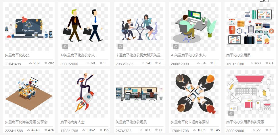 举几个例子,来看看可以找到什么样的图片。比如我常检索的扁平化素材,你可以得到类似这样的图片(部分):