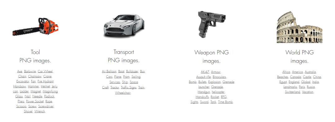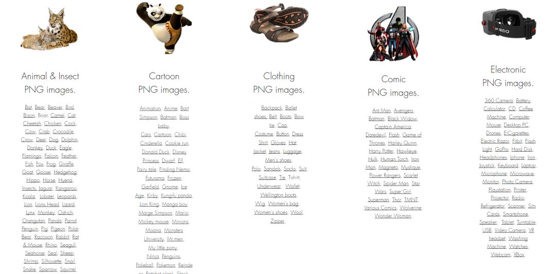 FREEPNGS 是以图片类别的形式,来筛选图片的。只要清楚自己想要什么类型的图片,基本可以满足需求。