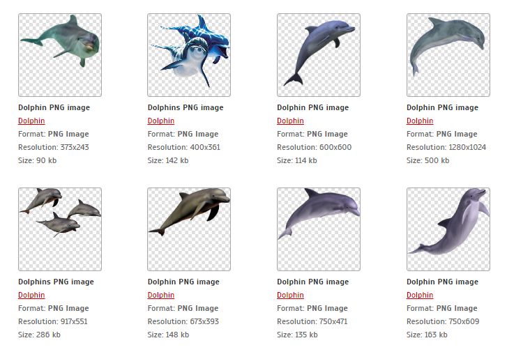 比如搜索海豚的关键词,你可以得到下面这些图片(部分)。