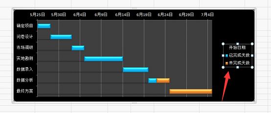 至此,一个静态的甘特图就完成了。接下来学习如何将这个静态的图变成一个动态图表。