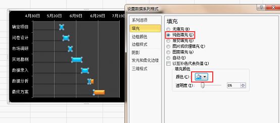 在系列“开始日期”上单击右键,从弹出的菜单中选择“设置数据系列格式”: